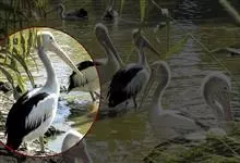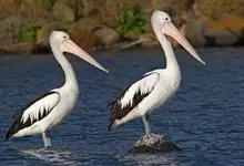 澳大利亚鹈鹕是一种大型涉禽,体重达13千克。生活于沿海及河川、湖泊等处。飞行力强而悠逸,常群飞群栖,极善于游泳,但不会潜水。游泳时张口捕鱼,将捕得的鱼兜入喉囊内。有时结群,排成长线,…全部>>