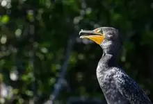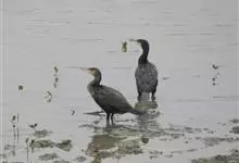普通鸬鹚是属于鲣鸟目鸬鹚科鸬鹚属鸟类,又名水老鸦、鱼鹰、乌鬼、黑鱼郎等。体长720—900毫米,雌雄同型。通体黑色,有绿褐色金属光泽;喙厚重,喙基和喉囊橙黄色,脸颊及喉白色;夏羽颈及头饰具白色丝状羽,…全部>>