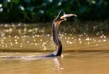 蛇鹈是热带内陆水鸟,颈细长如蛇,嘴尖无喉囊,善于潜水,用嘴当鱼叉叉鱼。蛇鹈在美洲,非洲,亚洲南部和大洋洲各有一种,即美洲的蛇鹈、非洲的红蛇鹈、亚洲南部的黑腹蛇鹈和大洋洲的澳洲蛇鹈A.novaehol…全部>>