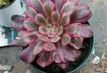 红缘莲花掌属蔷薇目、景天科植物,原产大西洋的加那利群岛。质厚,蓝绿色,被白霜,叶缘红褐色。聚伞花序,花浅黄色,有时带红晕。叶形叶色较美,有一定的观赏价值,多盆栽用于点缀室内;可放置于电视、电脑旁,…全部>>