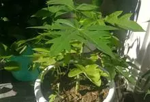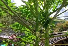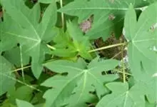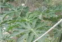 番木瓜,番木瓜科番木瓜属的常绿软木质小乔木,高达10米,具有乳汁;茎不分枝或有时于损伤处分枝;叶大且聚生于茎顶,近似盾形,叶柄中空;花单性或两性,有些品种雄株偶尔生两性花或雌花,…全部>>
