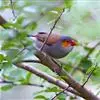 橙颊梅花雀体长约10厘米,头部灰色,两侧有大块橙色区域,嘴基及眼下方有黑纹,两条黑纹间呈白色,颊部有橙红色块斑,喙为红色至橙红色,背部及翼为褐色,腰为鲜红色,身体腹面淡灰色,腹部白色至皮黄色,…全部>>