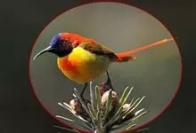 雀形目、太阳鸟科、太阳鸟属鸟类的通称。体型纤细,嘴细长而下弯,嘴缘先端具细小的锯齿;雄鸟中央尾羽特别长;两性异色。世界共有14种,分布于亚洲南部、菲律宾群岛和印度尼西亚。中国有6种。…全部>>