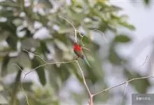黄腰太阳鸟共有16个亚种,小型鸟类,体长10-15厘米。嘴细长而向下弯曲,雄鸟额和头顶前部金属绿色,头顶后部橄榄褐色。其余头、颈、背、肩、颏、喉、胸以及翅上中覆羽和小覆羽概为红色,腰黄色,…全部>>
