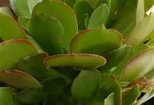 红缘莲花掌属蔷薇目、景天科植物,原产大西洋的加那利群岛。质厚,蓝绿色,被白霜,叶缘红褐色。聚伞花序,花浅黄色,有时带红晕。叶形叶色较美,有一定的观赏价值,多盆栽用于点缀室内;可放置于电视、电脑旁,…全部>>