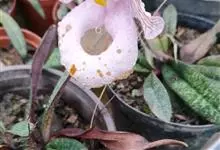 兜兰是兰科兜兰属的多年生草本植物。根茎粗状,直径3~4毫米,有很多须根;叶基生,叶片肉质增厚,排成紧密2列,叶片呈长圆形,表面有极短柔毛;总状花序,粉白色,花葶直立或倾斜,深绿色或褐色,花瓣大,呈唇形,…全部>>