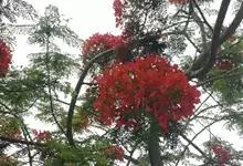 凤凰木 Raf.) ,别名火树、红花楹、凤凰花、火凤凰、金凤花、红楹,是豆科凤凰木属高大落叶乔木,树皮灰褐色,粗糙。二回偶数羽状复叶互生,矩圆形,两面均被柔毛。伞房式总状花序,花大,花瓣5枚,圆形,…全部>>