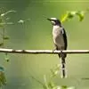 灰山椒鸟:体长18-20厘米。上体灰色或石板灰色,两翅和尾黑色,翅上具斜行白色翼斑,外侧尾羽先端白色。前额、头顶前部、颈侧和下体均白色,具黑色贯眼纹。雄鸟头顶后部至后颈黑色,雌鸟头顶后部和上体均为灰色。…全部>>