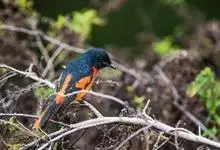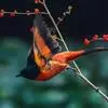灰喉山椒鸟:共有8个亚种。体长18-22厘米。雄鸟头部和背亮黑色,腰、尾上覆羽和下体朱红色,翅黑色具一大一小的两道朱红色翼斑。中央尾羽黑色,外侧尾羽基部黑色,端部红色。…全部>>
