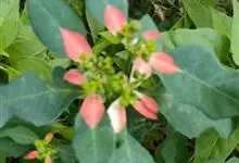 猩猩草:常绿或半常绿灌木,盆栽时株高0.5米-2米,在亚热带地区可长到6米以上。茎直立而光滑,单叶互生,卵状椭圆形至阔披针形,具不规则的深缺刻。长10-15厘米。花小,有蜜腺,排列成密集的伞房花序。…全部>>