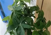 瓜栗 Walp. ),俗称发财树,木棉科小乔木,高4-5米,树冠较松散,幼枝栗褐色,无毛。小叶具短柄或近无柄。花单生枝顶叶腋;花梗粗壮,被黄色星状茸毛,脱落;萼杯状,近革质;花瓣淡黄绿色,狭披针形…全部>>