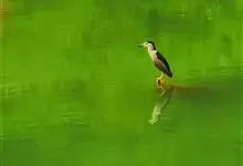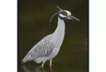 夜鹭是中型涉禽,体长46-60厘米。体较粗胖,颈较短;嘴尖细,微向下曲,黑色;胫裸出部分较少,脚和趾黄色;头顶至背黑绿色而具金属光泽;上体余部灰色;下体白色;枕部披有2-3枚长带状白色饰羽,下垂至背上,…全部>>