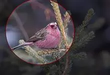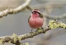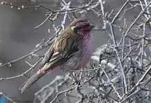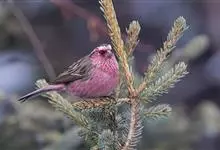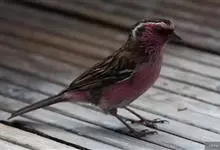 藏朱雀:全长约17-18厘米。雄鸟头部深红色具光辉,喉部暗红色具白色点斑;背部灰白色,各羽具玫瑰红色羽端,形成许多斑纹;腰部淡玫瑰红色;翅暗褐色,沾灰白,羽端沾玫瑰红或灰白色;尾暗棕色,端缘玫瑰红色…全部>>