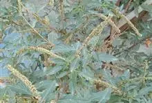 反枝苋是苋科苋属的一年生草本植物。株高达1米;茎密被柔毛;叶菱状卵形或椭圆状卵形,先端锐尖或尖凹,两面及边缘被柔毛,下面毛较密;穗状圆锥花序,顶生花穗较侧生者长;花被片长圆形或长圆状倒卵形,…全部>>