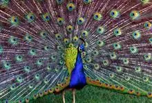 绿孔雀是鸡形目雉科孔雀属鸟类,别名:孔雀、越鸟、爪哇绿孔雀。雄性绿孔雀全身呈翠绿色,并反紫铜色光。头顶有一簇直立的冠羽,尾上复羽发达的约长1米,每羽端部有一个蓝色和翠绿色镶嵌的眼状斑,…全部>>