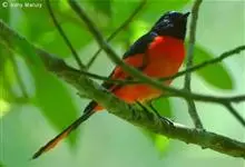 赤红山椒鸟为山椒鸟科山椒鸟属的鸟类,俗名红十字鸟、朱红山椒鸟。雄鸟红色,雌鸟黄色。分布于印度沿喜马拉雅山脉至中南半岛、印度尼西亚、菲律宾以及中国大陆的西藏、云南、福建、湖南、广西、广东、海南等地,…全部>>