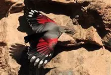 红翅旋壁雀:体重15-23克,体长120-178毫米。是一种体型略小的鸟类。尾短而嘴长,翼具醒目的绯红色斑纹。飞羽黑色,外侧尾羽羽端白色显著,初级飞羽两排白色点斑飞行时成带状。繁殖期雄鸟脸及喉黑色,…全部>>