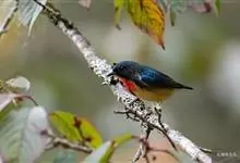 红胸啄花鸟:体重5-10克,体长60-92毫米。体形纤小。雄鸟上体呈辉亮的金属绿色;下体棕黄,胸部具一朱红色块斑,极易与其他啄花鸟区别。雌鸟上体呈橄榄绿,下体棕黄色。虹膜褐色,嘴褐黑色或角灰色,…全部>>