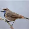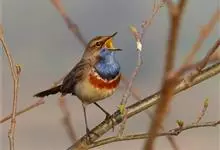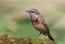 蓝点颏亦称“蓝喉歌鸲”,通称蓝靛颏儿。身体大小和麻雀相似,体长12-13厘米,体重17-18克。头部、上体主要为土褐色。眉纹白色。尾羽黑褐色,基部栗红色。颏部、喉部辉蓝色,下面有黑色横纹。下体白色。…全部>>