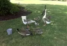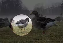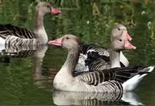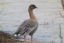 灰雁:体长70-90厘米,翼展147-182厘米,体重2.5-4千克,寿命17年。体大而肥胖。嘴、脚肉色,上体灰褐色,下体污白色,飞行时双翼拍打用力,振翅频率高。脖子较长。腿位于身体的中心支点,…全部>>