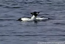 鹊鸭是雁形目鸭科鹊鸭属鸟类。鹊鸭雄鸟头颈部近黑色泛绿色光泽,两颊近缘基处各有一圆形大白斑;背至尾羽黑色,肩外侧白色,外用羽缘黑色,在体侧形成数条平行排列的斜纹;翼黑褐色带白斑;下体白色,…全部>>