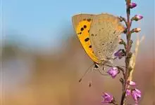 橙灰蝶Lycaena dispar Hauorth,鳞翅目、灰蝶科。这类蝴蝶雌雄异型,雄蝶前翅翅面橙色,顶角向边缘有窄的黑带;后翅基部和臀缘有较宽的黑色区;雌蝶前翅翅面橙色,中室内有2个黑斑,后翅黑…全部>>