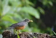 灰背鸫,又名灰乌鸫,是雀形目鸫科鸫属鸟类。雄鸟额及整个上体为橄榄灰色,眼先黑色,头侧微沾棕褐色,耳羽黑褐色杂以细白羽干纹;飞羽和尾羽褐黑色,外翈缀有灰蓝色;下体颏、喉灰白色具黑褐色羽干纹,胸淡灰色,…全部>>