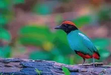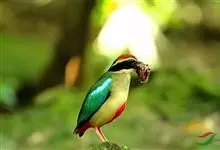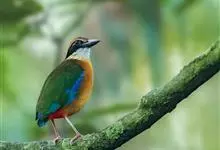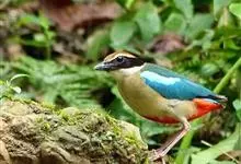 蓝翅八色鸫是雀形目八色鸫科的鸟类。体长17-20厘米,体重类约48-70克,体型圆胖,尾短,腿长,以身体具有红、绿、蓝、白、黑、黄、褐、栗等鲜艳夺目,丰富艳丽的色彩而得名,是很有观赏价值的鸟类。主要…全部>>