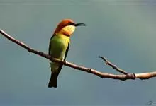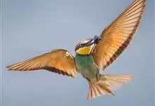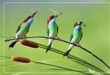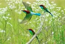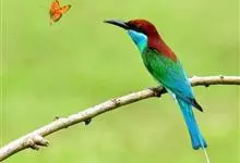蓝颊蜂虎:是蜂虎科、蜂虎属的鸟类,共有2个亚种。体长27-33厘米,翼展46-49厘米,体重38-50克。嘴形细长而下弯,先端尖,…全部>>