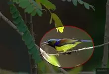 蓝喉蜂是蜂虎科蜂虎属鸟类。体长26-28厘米,嘴长而弯曲,有明显细长的中央尾羽。头部、颈部和背部为巧克力色,有黑色眼纹。喉部、腰部和尾羽为蓝色。腹部和两翼为绿色。幼鸟外观似成鸟,头部、颈部和背部为绿色,…全部>>