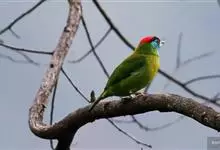 金喉拟啄木鸟,是须鴷科、拟啄木鸟属的鸟类。金喉拟啄木鸟为小型鸟类,体长19-24厘米。额深红色,头顶金黄色,后枕具一大块深红色斑,耳羽和头侧银灰色,上体草绿色,颏和上喉金黄色,下喉淡银灰色,…全部>>