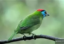 蓝喉拟啄木鸟,是须鴷科、拟啄木鸟属的鸟类。蓝喉拟啄木鸟为小型鸟类,体长20-23厘米。前额至头顶鲜红色,其上有一宽阔的黑色横带,将此红色分为前后二块;头侧、颏、喉蓝色,下喉两侧各具一红色点斑。…全部>>