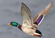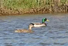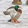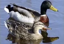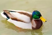 绿头鸭属游禽,大型鸭类。体长47-62厘米,体重大约1千克,外形大小和家鸭相似。雄鸟嘴黄绿色,脚橙黄色,头和颈辉绿色,颈部有一明显的白色领环。上体黑褐色,腰和尾上覆羽黑色,两对中央尾羽亦为黑色,且向…全部>>