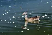 凤头潜鸭又名泽凫、凤头鸭,是雁形目鸭科潜鸭属中型潜水鸭。其体长约40厘米;雌雄均有长的辫状冠羽,嘴宽大,眼黄色;雄鸟全体黑色,但腹部、两胁和翼镜为白色;雌鸟全体大致为褐色,两胁有褐色斑纹,腹部白色。…全部>>