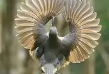 琴鸟,是雀形目琴鸟科琴鸟属底栖型鸟类。体型较大,通体浅褐色;雄鸟有长达70厘米,宽3.5厘米的竖琴形美丽尾羽,最外侧的尾羽先端外卷成弧形,上缀金褐色冠状斑;边缘黑色,…全部>>