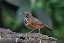 斑胸钩嘴鹛是雀形目、画眉科、钩嘴鹛属的鸟类。体型略大的钩嘴鹛。无浅色眉纹,脸颊棕色。甚似锈脸钩嘴鹛但胸部具浓密的黑色点斑或纵纹。栖息于低山地区及平原的林地灌丛间,在林间作短距离飞翔。…全部>>
