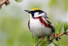 家麻雀:共有13个亚种。是小型鸟类,体长14-16厘米。背栗红色具黑色纵纹,两侧具皮黄色纵纹;颏、喉和上胸黑色,脸颊白色,其余下体白色,翅上具白色带斑。雄鸟与树麻雀的区别在顶冠及尾上覆羽灰色,耳无黑…全部>>