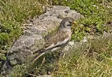 白斑翅雪雀:属典型的高原鸟类,共有7个亚种,体重30-34克,体长142-169毫米,较雪雀属中其他种体型稍大;雄鸟头灰,颏黑,翕和肩富于褐色;翼大部白色;除一对中央尾羽黑色外其余均为白色而具黑色羽端,…全部>>