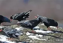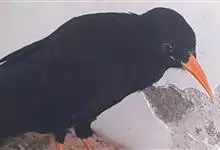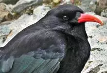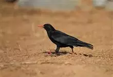 红嘴山鸦,是脊索动物门鸟纲雀形目鸦科鸟类。红嘴山鸦的成鸟通体羽毛纯黑色具有蓝色金属光泽,翼和尾泛有蓝绿色金属光泽;虹膜暗褐色,喙较为尖细,并且呈镰状下弯,喙和脚朱红色。…全部>>