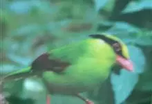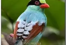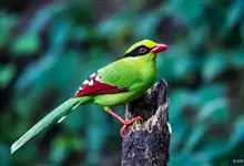 蓝绿鹊:中型鸟类,共有5个亚种。体长36-38厘米。尾长,嘴、脚红色。通体羽色主要为草绿色,宽阔的黑色贯眼纹向后延伸到后颈,在绿色的头侧极为醒目。两翅栗红色,内侧飞羽具黑色次端斑和白色尖端。尾绿色,…全部>>