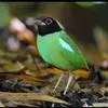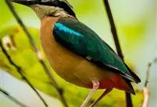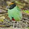 绿胸八色鸫:是雀形目八色鸫科的鸟类,共有12个亚种。体长为16-18厘米,体重65-69克。体型圆胖,尾短,腿长。头黑,上体绿色,两翼深色而具白色斑纹,头顶至后枕深褐,胸及腹部苹果绿,臀亮红。…全部>>