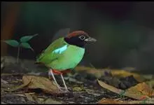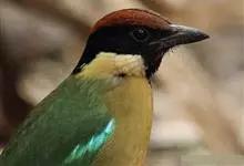 栗头八色鸫又叫锅巴雀,体长为24-26厘米,体重100-135克,是雀形目八色鸫科的鸟类。体型圆胖,尾短,腿长,常在森林底层或低植被中找食无脊椎动物。叫声简单哀婉。…全部>>