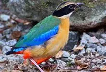 蓝翅八色鸫是雀形目八色鸫科的鸟类。体长17-20厘米,体重类约48-70克,体型圆胖,尾短,腿长,以身体具有红、绿、蓝、白、黑、黄、褐、栗等鲜艳夺目,丰富艳丽的色彩而得名,是很有观赏价值的鸟类。主要…全部>>