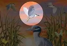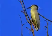 夜鹭是中型涉禽,体长46-60厘米。体较粗胖,颈较短;嘴尖细,微向下曲,黑色;胫裸出部分较少,脚和趾黄色;头顶至背黑绿色而具金属光泽;上体余部灰色;下体白色;枕部披有2-3枚长带状白色饰羽,下垂至背上,…全部>>