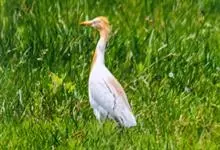 牛背鹭:体较肥胖,喙和颈较短粗。夏羽大都白色;头和颈橙黄色,前颈基部和背中央具羽枝分散成发状的橙黄色长形饰羽;前颈饰羽长达胸部,背部饰羽向后长达尾部,尾和其余体羽白色。冬羽通体全白色,个别头顶缀有黄色,…全部>>