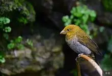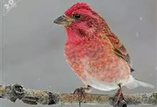 藏朱雀:全长约17-18厘米。雄鸟头部深红色具光辉,喉部暗红色具白色点斑;背部灰白色,各羽具玫瑰红色羽端,形成许多斑纹;腰部淡玫瑰红色;翅暗褐色,沾灰白,羽端沾玫瑰红或灰白色;尾暗棕色,端缘玫瑰红色…全部>>