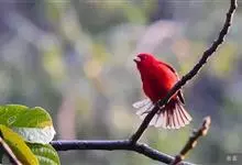 普通朱雀是雀形目雀科朱雀属鸟类,又名红朱雀、马料、青麻料。雄鸟上体红色,下体淡红色;头部、喉部、胸部及腰部亮红色;背部褐色染红色;两翼及尾黑褐色,羽缘染红色。雌鸟上体橄榄褐色,下体近白色,…全部>>