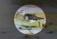 泽鹬:小型涉禽,体长19-26厘米。嘴长,相当纤细,直而尖。颜色为黑色,基部绿灰色,脚细长,暗灰绿色或黄绿色。夏季上体灰褐色具黑色斑,腰白色并向下呈楔形延伸。下体白色,颈、胸具细的黑色纵纹。…全部>>