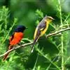 灰喉山椒鸟:共有8个亚种。体长18-22厘米。雄鸟头部和背亮黑色,腰、尾上覆羽和下体朱红色,翅黑色具一大一小的两道朱红色翼斑。中央尾羽黑色,外侧尾羽基部黑色,端部红色。…全部>>