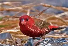 红梅花雀小型鸟类,体长9-10厘米。雄鸟通体朱红色,背、肩、胸等满布白色小斑点,两翅和尾黑褐色均具白色端斑,嘴红色,脚蜡黄色。雌鸟上体淡褐色或赭褐色,翅上中覆羽、大覆羽和内侧飞羽末端具白色斑点,…全部>>
